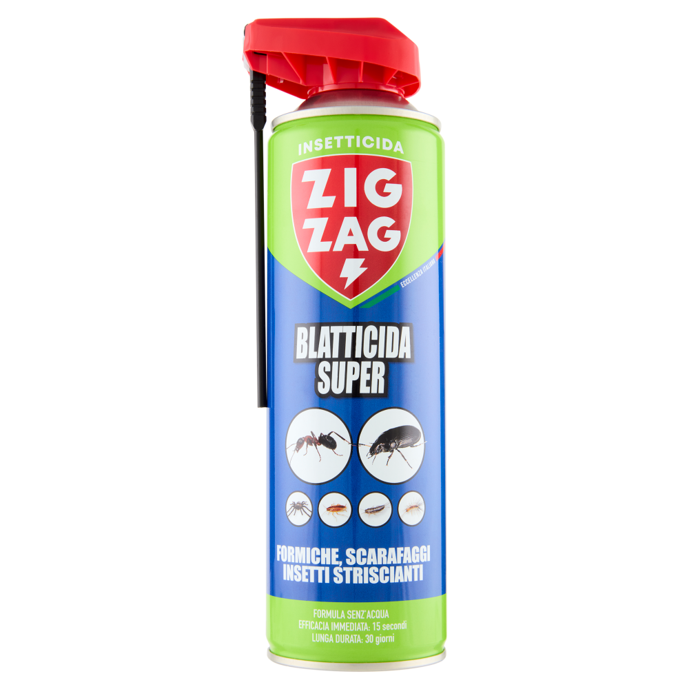 Zig Zag Blatticida Super è un insetticida specifico per trattamenti "terra-muro". Contro tutti gli insetti striscianti possiede una prolungata azione residuale (fino a 30 giorni), un'efficacia immediata (15-45 sec) oltreché un'azione snidante. Formula senz'acqua, non bagna e non macchia. Doppia erogazione Per raggiungere gli interstizi Per le altre applicazioni