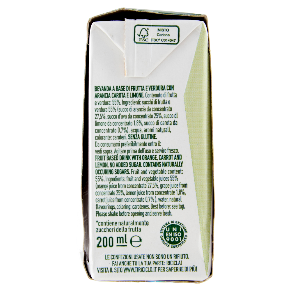 Senza glutineBevanda a base di frutta e verdura con arancia carota e limone Contenuto di frutta e verdura: 55%