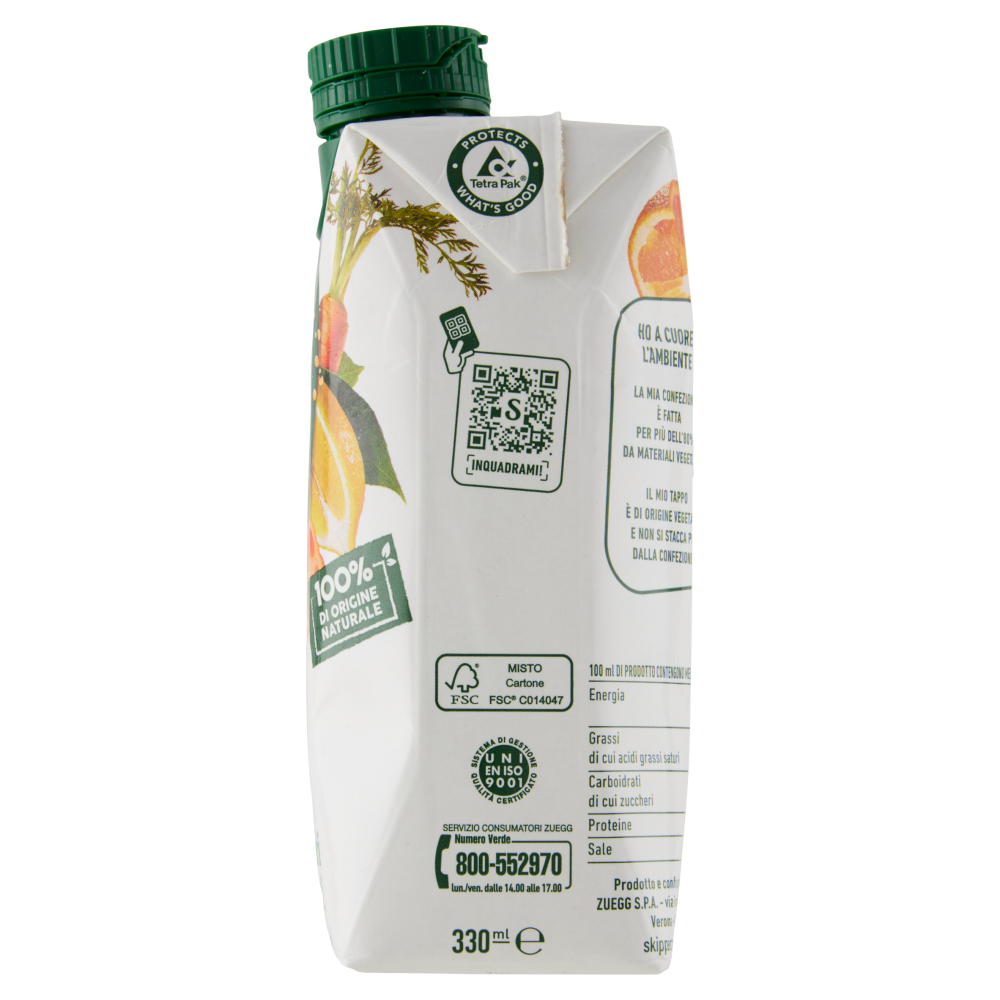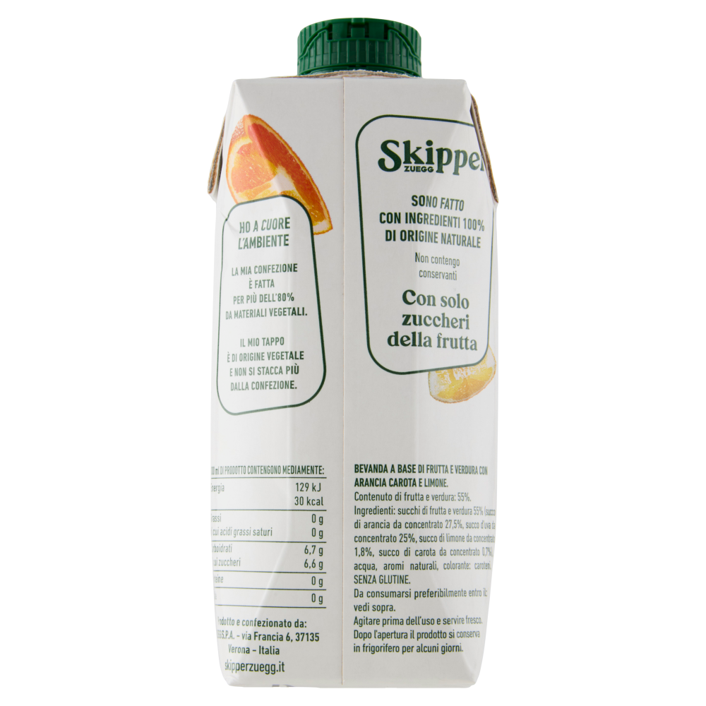 Senza glutineBevanda a base di frutta e verdura con arancia carota e limone Contenuto di frutta e verdura: 55%