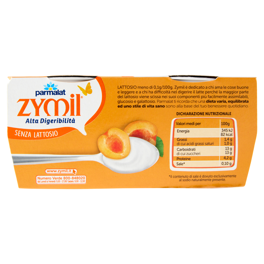 ZYMIL Alta Digeribilità Senza Lattosio Yogurt Yogurt all'Albicocca 2 x 125 g