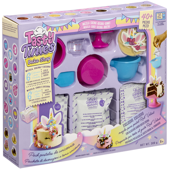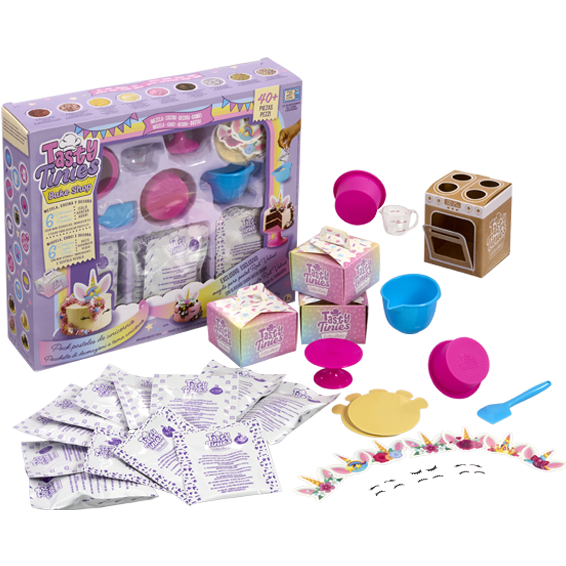 Una linea innovativa di giochi di cucina che offre un’esperienza unica: prepara, decora e gusta le tue tortine fatte in casa in pochi minuti. Con Tasty Tinies Bake Shop Unicorno, ogni bambina o bambino possono trasformarsi in veri chef!